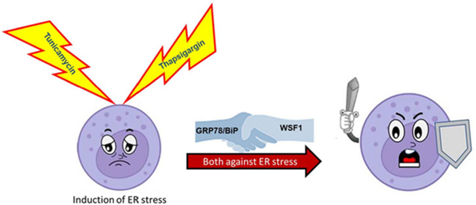 In previous research, we revealed that murine leukemia cells L1210 with induced expression of P-glycoprotein (P-gp, a membrane drug transporter, product of the Abcb1 gene) are better able to withstand endoplasmic reticulum (ER) stress (ERS) than their P-gp negative counterparts. This was associated with increased GRP78/BiP expression and modulation of the expression of several other proteins active in the cellular response to ERS (like CHOP, spliced XBP1, 50-kDa ATF6 protein fragment and others) in P-gp positive cells. Wolframin is an ER transmembrane protein, product of the WFS1 gene whose mutations are associated with Wolfram syndrome. However, this protein is frequently overexpressed in cells undergoing ERS and its expression may accompany changes in the above ERS markers. Therefore, our aim in this work was to investigate wolframin expression in P-gp-negative and P-gp-positive murine leukemia L1210 cells in relation to ERS related proteins in normal or ERS condition. We induced ERS in cells either by blocking N-glycosylation in the ER with tunicamycin or by blocking ER Ca2+-ATPase activity with thapsigargin, as known ER stressors. The results of this paper demonstrated increased wolframin expression in P-gp positive cells compared to P-gp negative cells. Immunoprecipitation experiments revealed the formation of complexes between wolframin and ERS related proteins (PERK, ATF6 and GRP78/BiP), the amount of which varied depending on the presence of the above ER stressors.