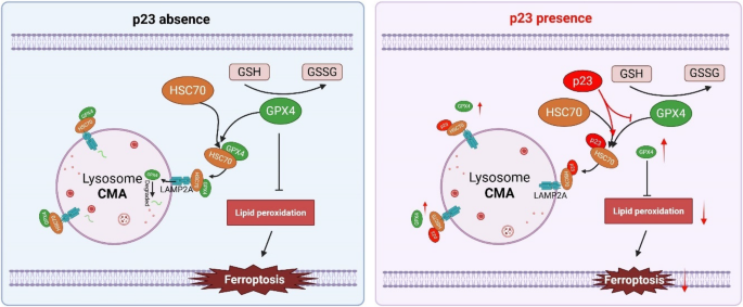 The role of p23 in competing with GPX4 for binding to HSC70, blocking CMA-mediated degradation of GPX4 and inhibiting ferroptosis