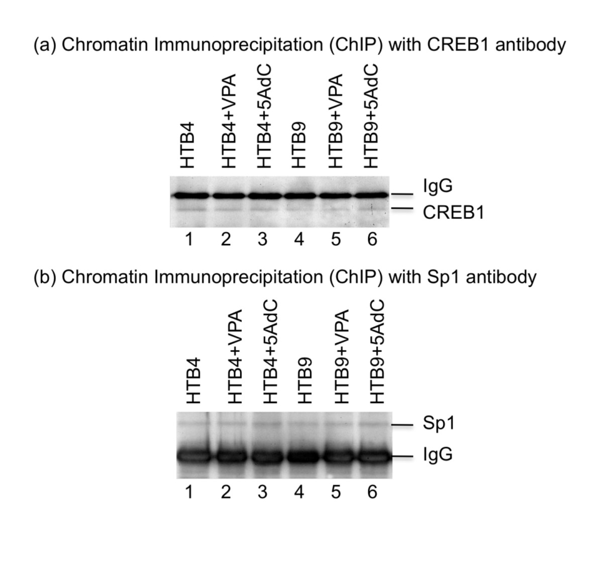 The results of our ChIP studies revealed that the VPA treatment led to an increase in binding of the CREB1 and Sp1 transcription factors to the 5' regulatory region of the XPC gene. These results suggest that inhibiting the binding of these transcription factors to their consensus sequences plays an important role in the HDACs-caused XPC gene silencing of bladder cancer cells. This provides an important basis for understanding the mechanism of XPC gene silencing in bladder cancer cells. However, it is widely known that the consensus sequences of many transcription factors are present at the promoter region of the XPC gene, whether or not the bindings of these transcription factors are also affected by HDACs, and therefore, contribute to the XPC gene silencing is largely unknown. It may be important to determine the effect of HDACs on the bindings of these individual transcription factors at the promoter region of the XPC gene in order to provide a better understanding of the molecular basis by which the HDACs cause silencing of the XPC gene in bladder cancer cells.