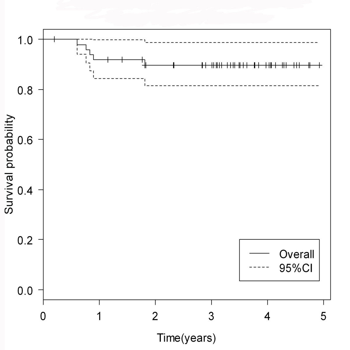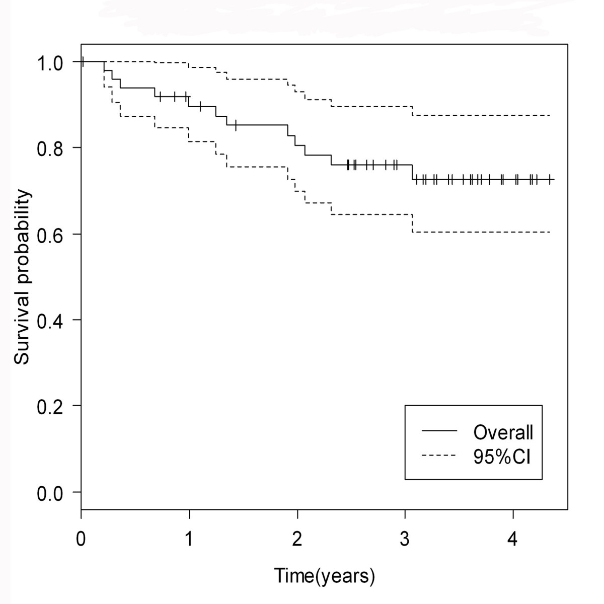 The median follow-up time was 37.3 months (range 3-59 months). (The 3-year overall survival rate and progression-free survival rate were 89.7% and 72.7%, respectively. (Figure 4, 5)