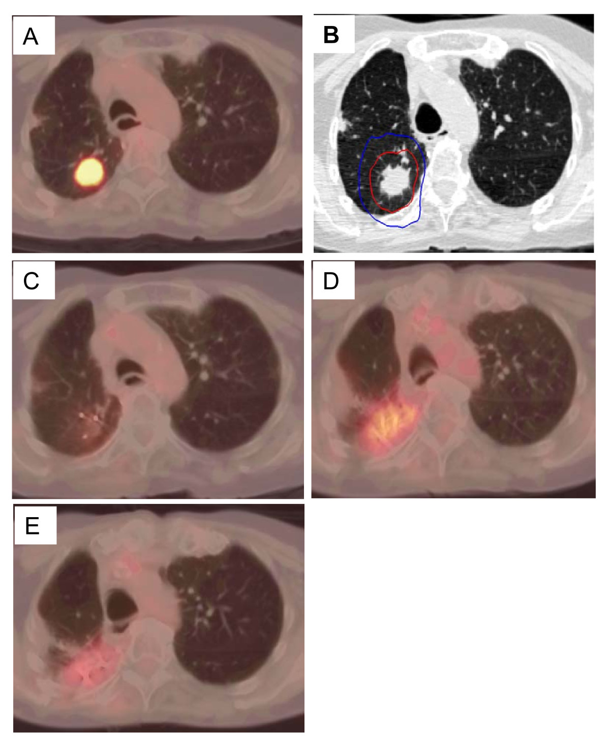 To report serial 18F-fluorodeoxyglucose (18F-FDG) positron emission tomography (PET)/computed tomography (CT) tumor response following CyberKnife radiosurgery for stage IA non-small cell lung cancer (NSCLC).