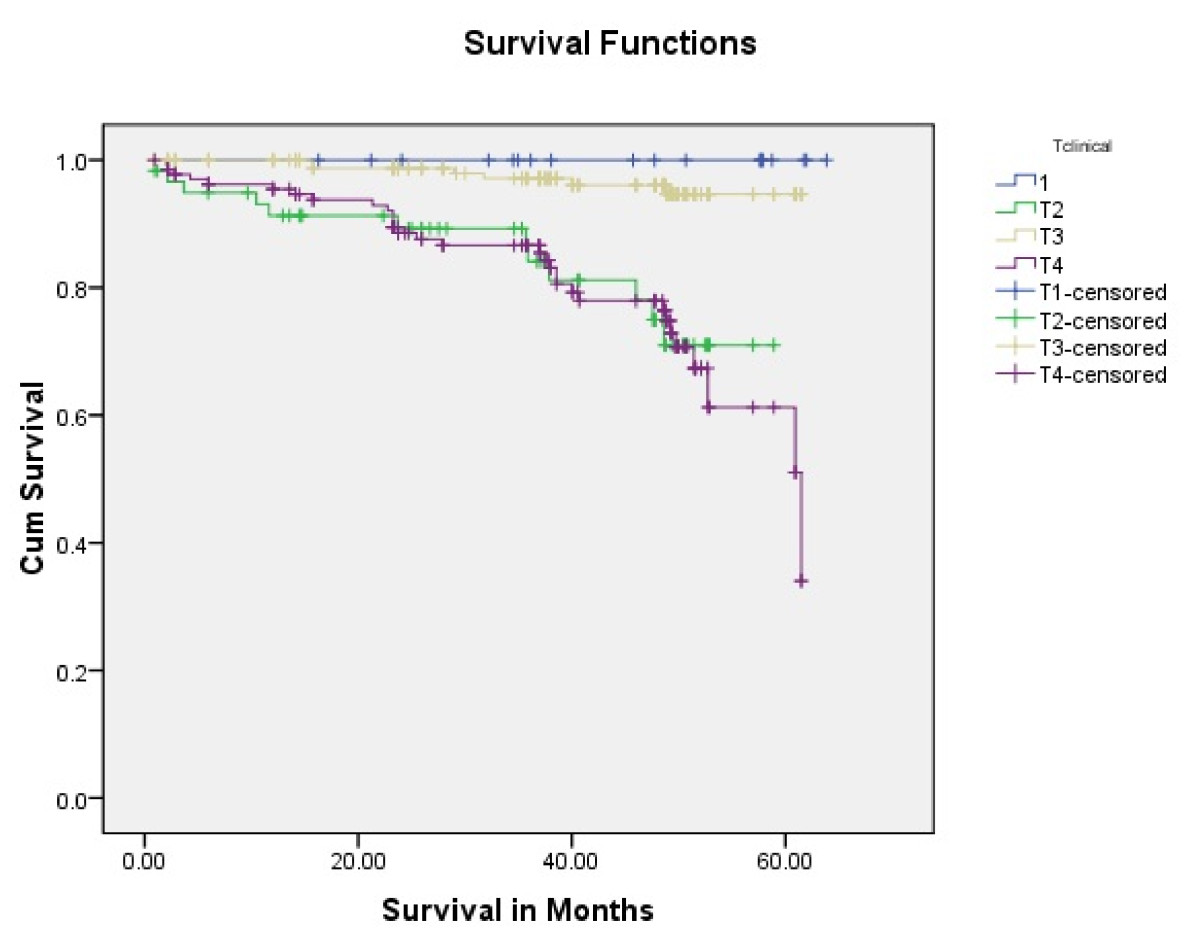 The smaller tumour size T has direct prognostic value. "Smaller the tumour size better the prognosis" this statement is generalized for al HNSCC but most appropriate for the tongue cancer (19). We have the consistent results (Figure 2). The resection defect is smaller so better the reconstruction and functional rehabilitation.