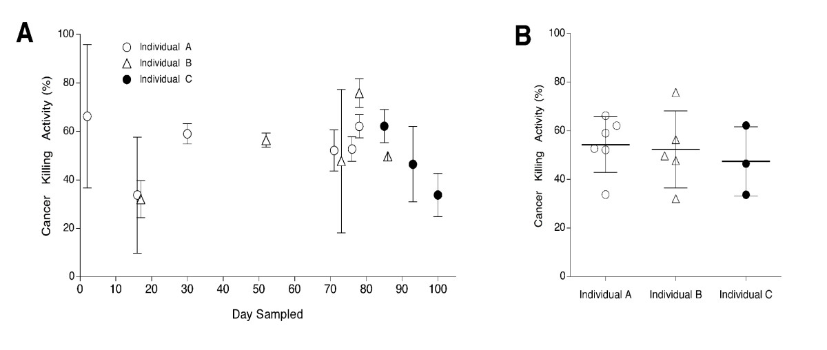 In this study, we pilot tested an in vitro assay of cancer killing activity (CKA) in circulating leukocytes of 22 cancer cases and 25 healthy controls.